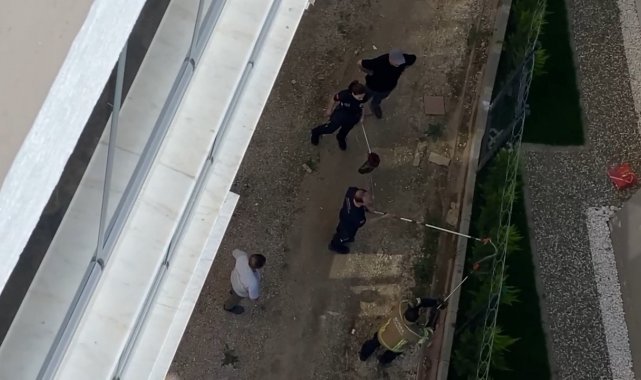 Vatandaşlar ise, 1,5 metre boyundaki yılanın ekipler tarafından kurtarılmasını tedirgin gözlerle camlardan izledi.