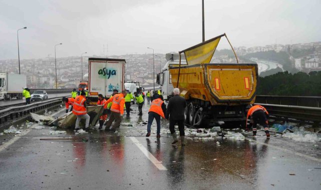 TEM'de 6 araç birbirine girdi: Tırda yüklü sular yola saçıldı