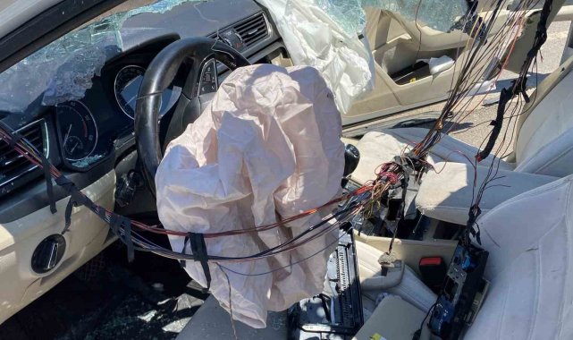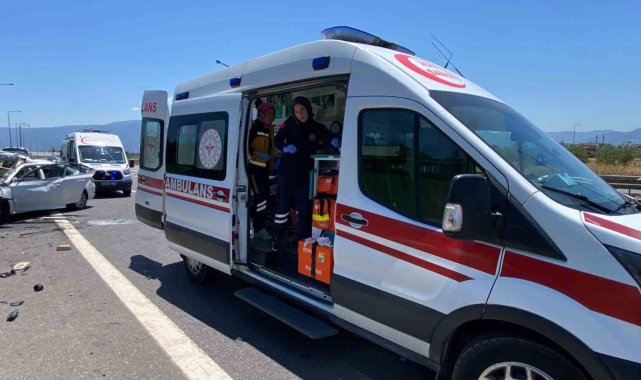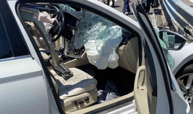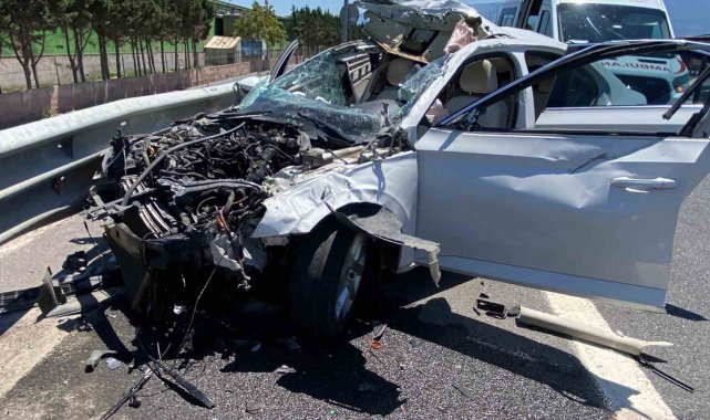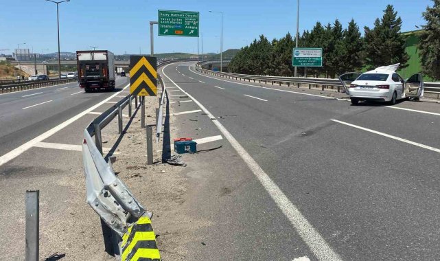 TEM'de bariyere çarpan otomobilin tavanı koptu: 4 yaralı