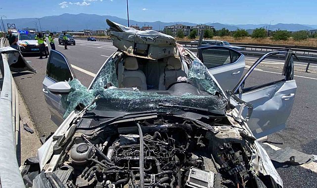 TEM Otoyolu'nun Kocaeli geçişinde bariyere çarpan otomobilin tavanı koptu. Kazada aynı aileden 4 kişi yaralandı.