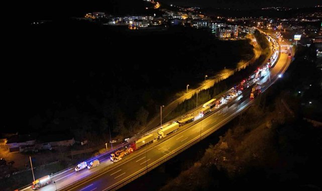 Kaza nedeniyle İstanbul istikameti uzun süre trafiğe kapandı. Karayolları ekipleri yolda temizlik çalışması başlattı. Trafik, tek şeritten kontrollü olarak sağlanıyor.
