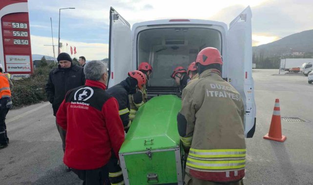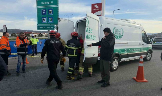 TEM Otoyolu'nun Düzce geçişinde bariyerlere ok gibi saplanan hafif ticari araçtaki 2 kişi olay yerinde hayatını kaybetti.
