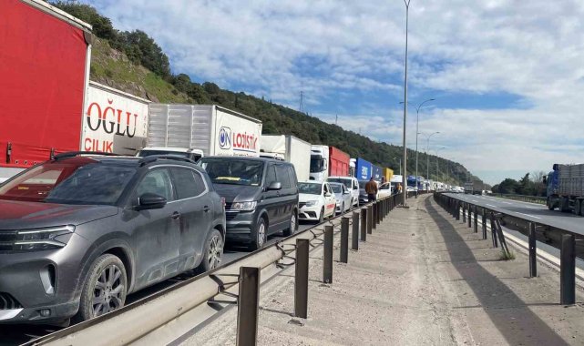 TEM'de iki tır kazaya karıştı, trafik felç oldu