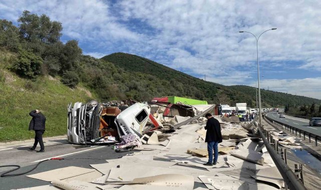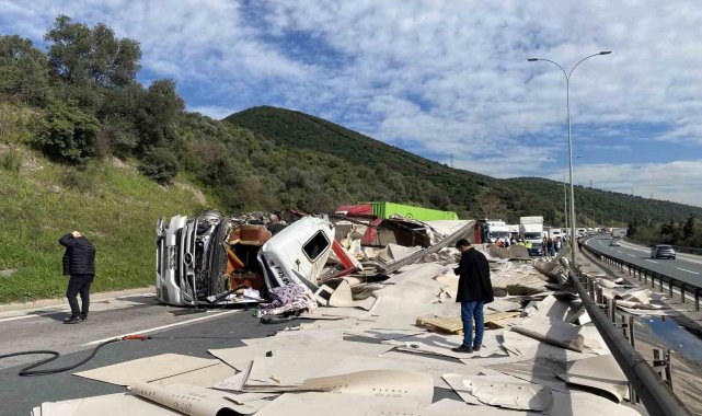 Edinilen bilgiye göre, TEM Otoyolu İstanbul istikameti Körfez ilçesi Şirinyer mevkiinde saat 13.00 sıralarında, kağıt yüklü 42 BES 996 plakalı tır, sürücüsünün direksiyon hakimiyetini kaybetmesi sonucu devrildi. Bu sırada aynı istikamette seyreden naylon yüklü 41 ASF 137 plakalı tırın sürücüsü, devrilen araca çarpmamak için manevra yapınca yoldan çıkarak bariyerlere çarptı.
