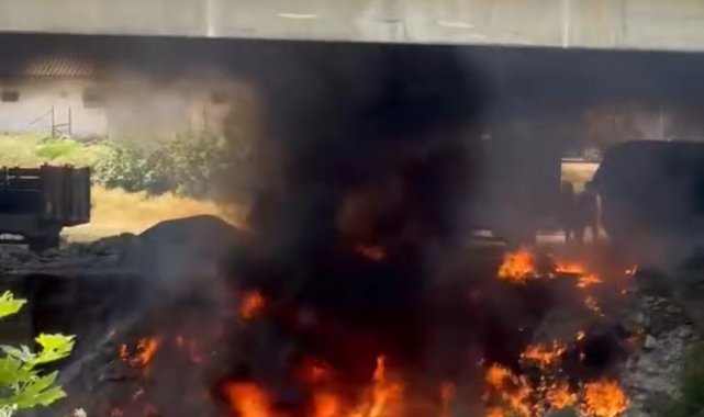 TEM Otoyolu'nun Düzce geçişinde köprü altında yakılan ateş, yolda ilerleyen sürücüleri tedirgin etti.