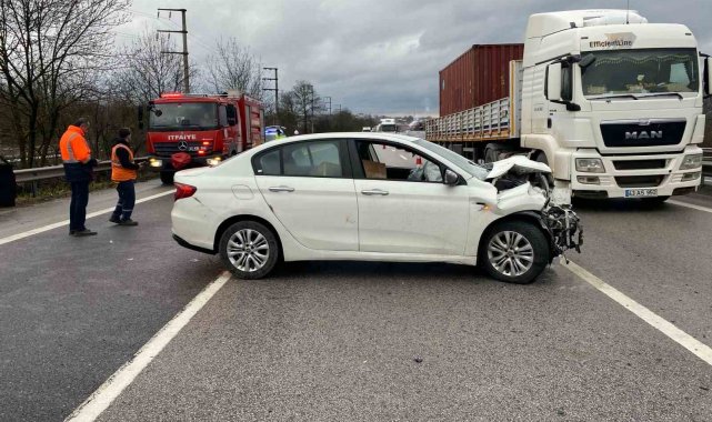 TEM Otoyolu'nun Kocaeli geçişinde tıra arkadan çarpan otomobilin sürücüsü yaralandı. Kaza sebebiyle İstanbul istikametinde uzun araç kuyruğu meydana geldi.