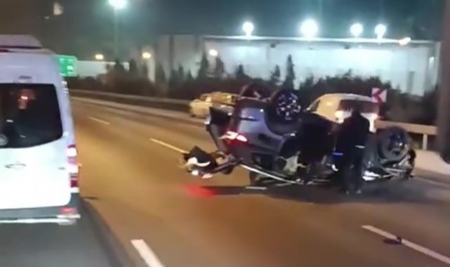 TEM Otoyolu'nun Kocaeli bariyere çarparak takla atan cipin sürücüsü yola fırladı, ticari taksi ise duramayarak cipe çarptı. Feci kazada cip sürücüsü hayatını kaybetti, taksici yaralandı.