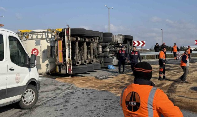 TEM Otoyolu İstanbul Çatalca Gişeleri mevkiinde virajı alamayan atık madde yüklü tanker devrildi. Yaralanan tanker sürücüsü hastaneye kaldırılırken bölgede uzun süre trafik yoğunluğu yaşandı.