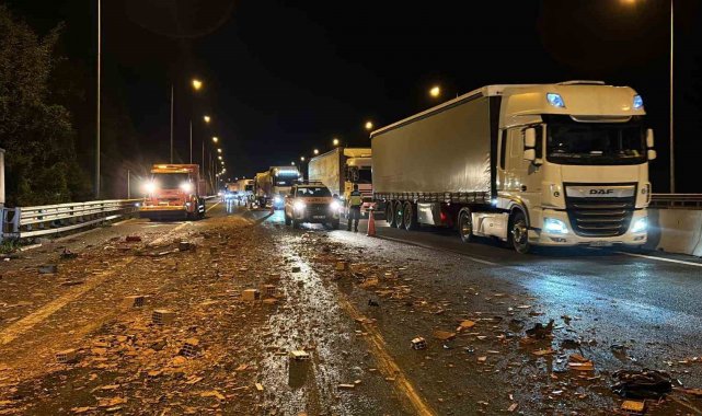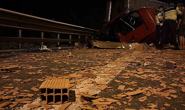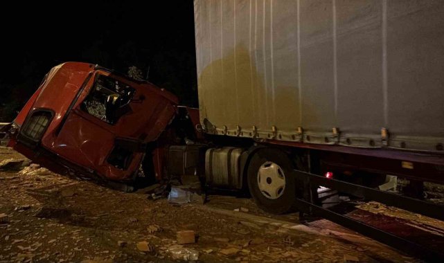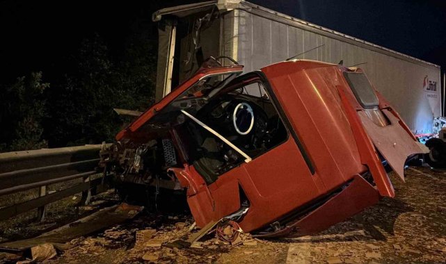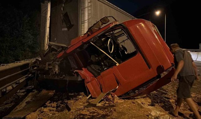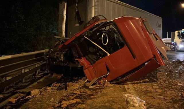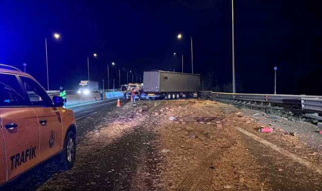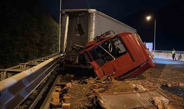 TEM'de tuğla yüklü tıra çarpan tır, hurdaya döndü: Sürücü yara almadan kurtuldu