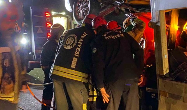 Çarpmanın şiddetiyle kamyonetin kasasında bulunan iki araçtan biri yerinden oynayarak sürücü kabinine doğru sarktı. Kamyonet sürücüsü Y.S., aracın ön kısmının tırın altına girmesi ve taşıdığı aracın arkadan kabine baskı yapması sonucu iki taraftan mahsur kaldı.