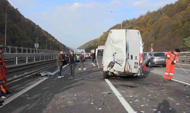 TEM Otoyolu'nun Bolu geçişinde otobüs, tır ve panelvanın karıştığı zincirleme kazada 1 kişi yaralandı.