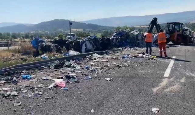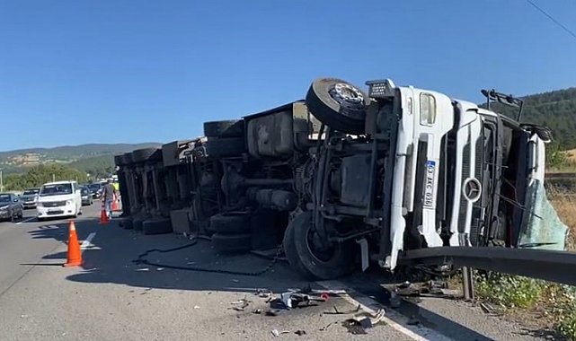 Bolu'da TEM Otoyolu'nda kontrolden çıkan tırın devrilmesi sonucu dorsesinde bulunan plastik hurdalar yola saçıldı. Kazada tır sürücüsü araç kabininde sıkışarak yaralandı.