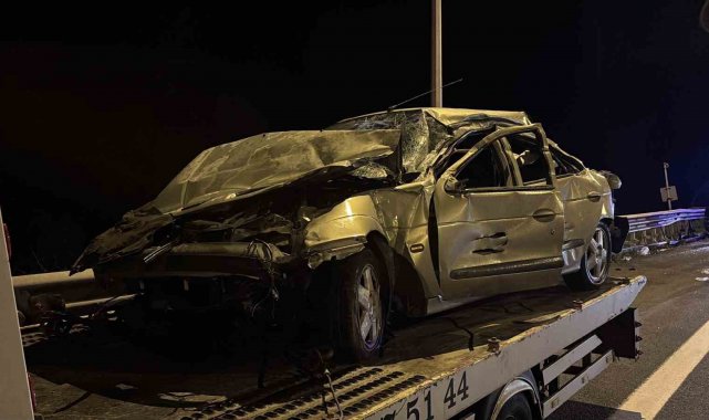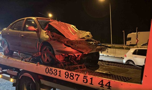 TEM Otoyolu Bolu Dağı Tüneli çıkışında bariyerlere çarpan otomobil hurdaya döndü. Kazada 1'i ağır 3 kişi yaralandı.