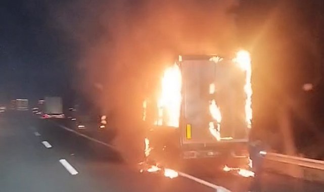 TEM Otoyolu'nda tırın dorsesi alev alev yandı