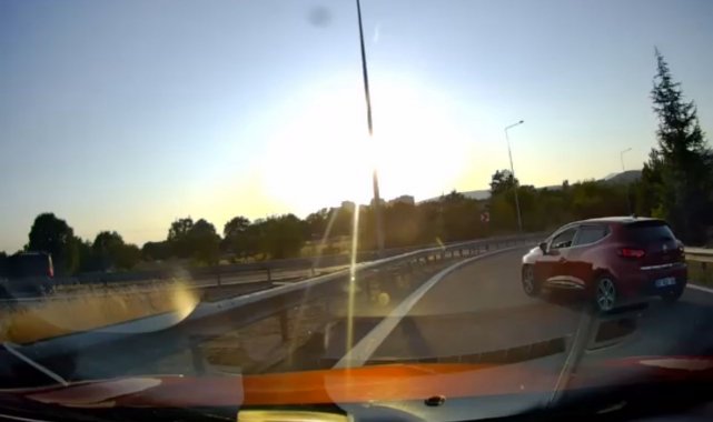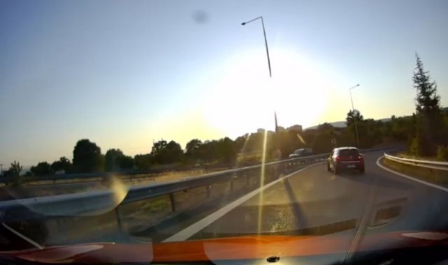 Bolu'da TEM Otoyolu Batı gişeleri çıkışında geri geri gelen bir otomobil az kalsın kazaya neden oluyordu. O anlar, seyir halindeki bir başka aracın kamerasına saniye saniye yansıdı.