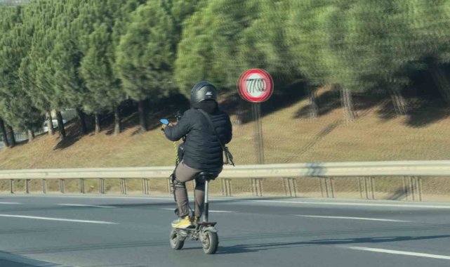 Elektirikli scooter gün geçtikçe kullanımı ve teknolojisi gelişiyor. Elektrikli bir scooter modeline göre 100 - 120 Km hızlara çıkabiliyor. Durum bu şekilde olunca kaskını takan vatandaşlar güvenli olduğunu düşünerek karayollarında seyretmeye başlıyor. Bu durum hem kendi canlarını hem de trafikteki diğer sürücüleri tehlikeye atıyor. TEM Otoyolu Mahmutbey kavşağı yakınlarında kaydedilen görüntüler izleyenleri şaşkına uğrattı. Hızla akan trafiğin içerisinde ilerleyen scooter bu kadarına pes dedirtti. Araçların arasından ilerleyen scooter aynı zamanda kurulan sistem ile oturarak ilerlerken, diğer sürücüler ise şaşkın bakışlarla scooter ile seyahat eden vatandaşı izledi.