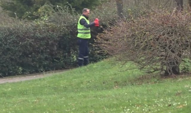 Bahçeşehir bölgesindeki yeşil alanlarda ağaç budama ve çevre düzenlemesi yapan Rıdvan Özçelikoğlu, mesaisi sırasında çalılıkların arasına takılmış bir Türk bayrağı fark etti. Kentte son günlerde etkili olan sert rüzgar nedeniyle savrulduğu tahmin edilen bayrağı bulunduğu yerden çıkaran Özçelikoğlu, zarar görmemesi ve kirlenmemesi için göğsüne koyarak mesaisine devam etti. Temizlik işçisinin bu duyarlı davranışı çevredeki vatandaşların da takdirini topladı.