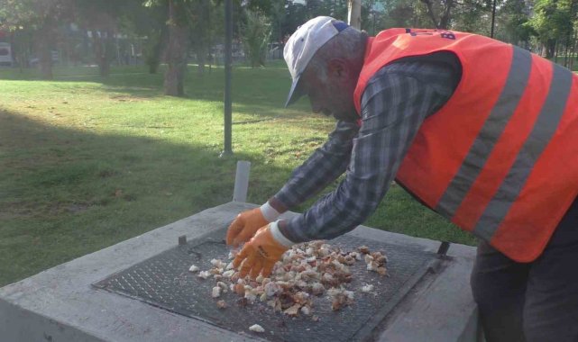 Bitlis'in Tatvan Belediyesi'nde temizlik görevlisi olarak çalışan Hazmi Kayaalp, çöpe atılan ekmekleri kuşlara ve diğer hayvanlara vererek büyük bir insanlık dersi veriyor.
