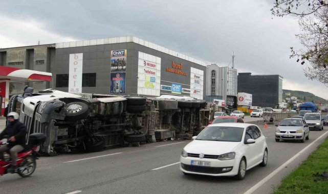 Samsun'da temizlik malzemesi yüklü tırın devrilmesi sonucu 1 kişi yaralandı.