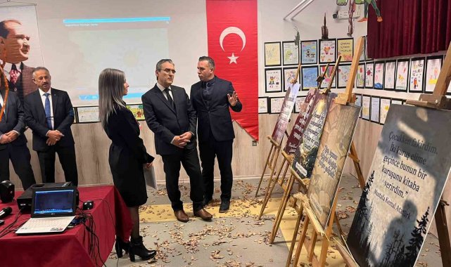 Mualla Zeyrek İlkokulu'nda öğrencilerin kitap sevgisini ve okuma kültürünü yansıtan çalışmaları sergilendi. Programa katılan Tepebaşı Kaymakamı Sadettin Yücel, okul bünyesinde hazırlanan fotoğraf ve resim sergisini büyük bir ilgiyle gezdi. Öğrenciler tarafından hazırlanan görsel çalışmaları tek tek inceleyen Kaymakam Yücel, minik ressam ve fotoğrafçılardan eserleri hakkında bilgi aldı. Kitap okuma alışkanlığının erken yaşlarda kazandırılmasının önemine dikkat çeken Yücel, sergide emeği geçen öğrenci ve öğretmenleri tebrik etti. Renkli görüntülere sahne olan program, Kaymakam Yücel ve öğrencilerin hatıra fotoğrafı çektirmesi ile sona erdi.