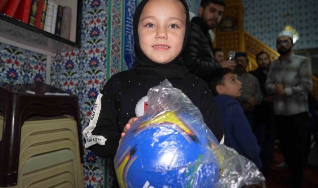 Kırıkkale'de teravih namazına gelen çocuklara çekilişle top ve bisiklet hediye edildi. Çocuklar, etkinlikte hep birlikte "Kabe'de Hacılar Hu Der Allah" ilahisini seslendirdi.