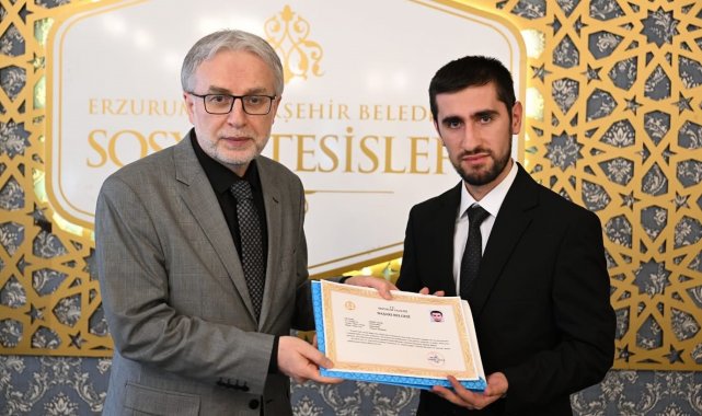 Erzurum Valisi Mustafa Çiftçi, Ramazan ayında teravih namazlarını hatimle kıldıran 29 din görevlisine ve TRT 1 ekranlarında yayınlanan Kur'an-ı Kerim'i Güzel Okuma Yarışması'nda Türkiye üçüncülüğü elde eden Palandöken Ebu İshak Camii Müezzin-Kayyımı Engin Şahin'e başarı belgesi takdim etti.