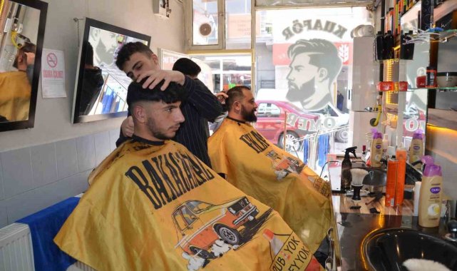 Tercan'da berberlerde bayram yoğunluğu