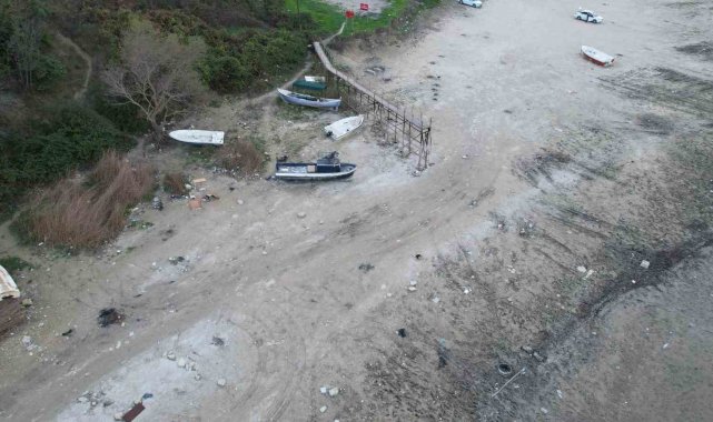 Son haftalarda yağışların yetersizliği nedeniyle İstanbul barajlarındaki su seviyelerinde düşüş yaşanıyor. Bu durumdan en çok etkilenen göllerden biri de Terkos oldu. Balaban kıyısında suyun geri çekilmesiyle göl tabanı ortaya çıktı. Normalde su üstünde kalması gereken iskele ve balıkçı tekneleri, karaya oturdu. Terkos Gölü'ndeki su çekilmesi drone kamerasıyla havadan görüntülendi. Görüntülerde, karaya oturan tekneler, toprak üzerinde kalan iskele ve suyun kıyıdan metrelerce uzaklaştığı net şekilde görüldü.