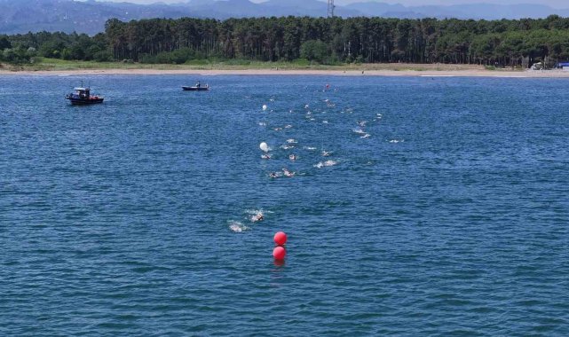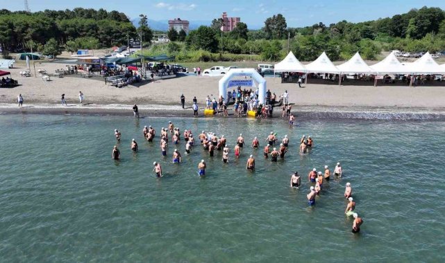 Terme'de açık su yüzme yarışması renkli görüntülere sahne oldu