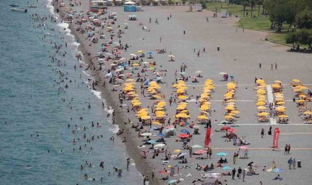 Termometreler 33 dereceyi gösterdi, Konyaaltı Sahili doldu taştı