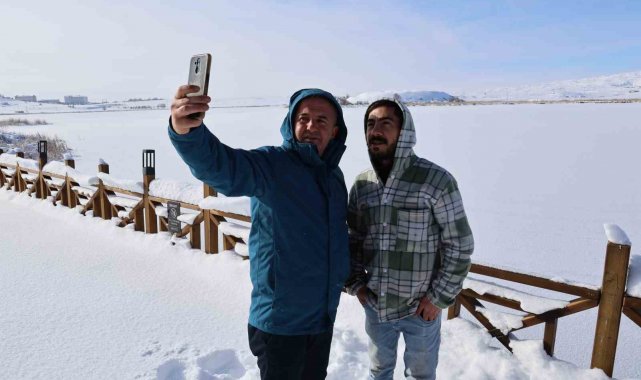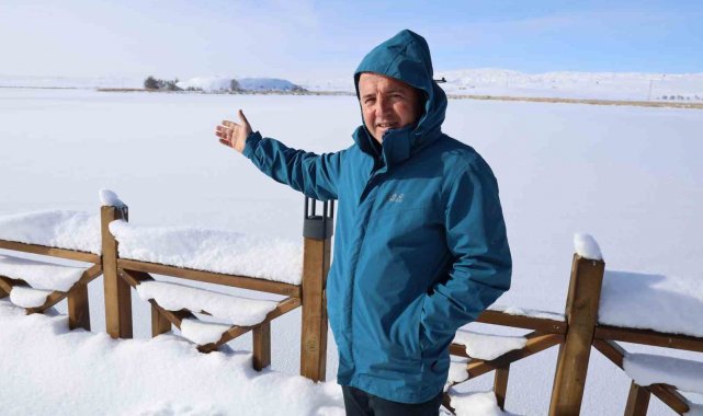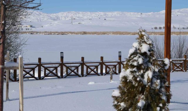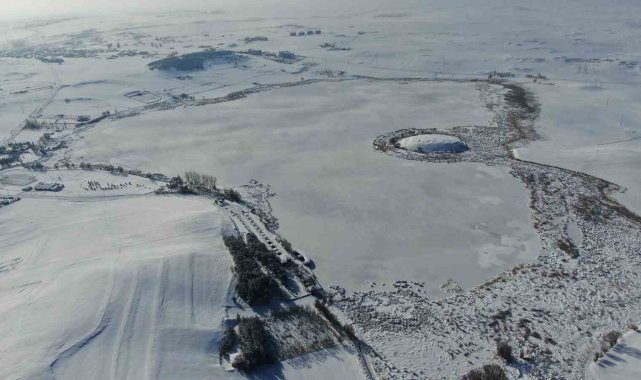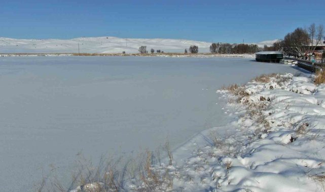 Termometreler eksi 21'i gösterdi, Hafik Gölü tamamen dondu