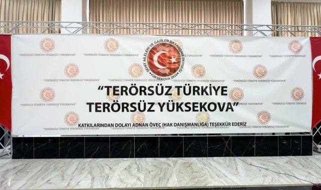 Hakkari'nin Yüksekova ilçesinde faaliyet gösteren Şehit Aileleri ve Gaziler Dayanışma Derneği, "Terörsüz Türkiye, Terörsüz Yüksekova" programıyla Cumhurbaşkanı Recep Tayyip Erdoğan ve MHP Genel Başkanı Devlet Bahçeli'ye teşekkür etti.