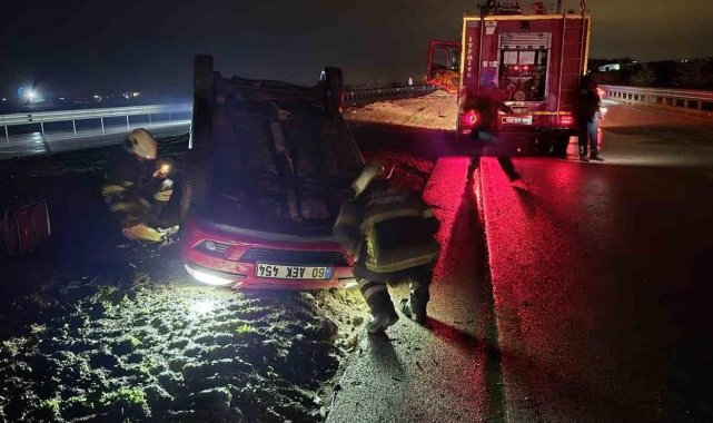 Ters dönen otomobildeki 2 kişi yaralandı