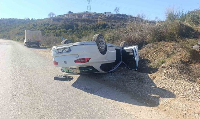 Antalya'nın Manavgat ilçesinde yol kenarındaki tümseğe çarparak ters dönen otomobilin sürücüsü yaralandı.
