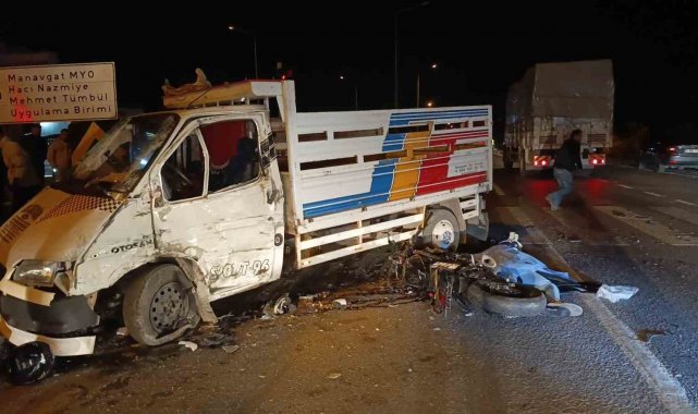 Antalya'nın Manavgat ilçesinde ters yönden gelen kamyonetle motosikletin çarpışması sonucu meydana gelen trafik kazasında 19 yaşındaki bir genç hayatını kaybederken, biri ağır olmak üzere iki kişi yaralandı.