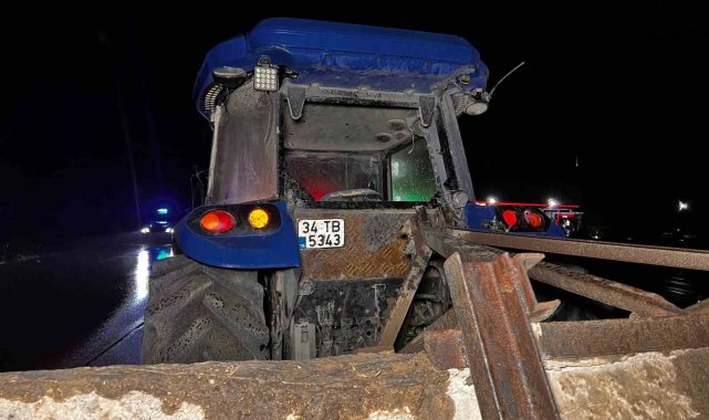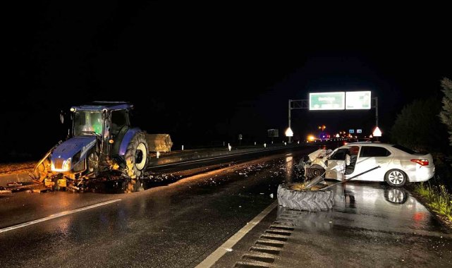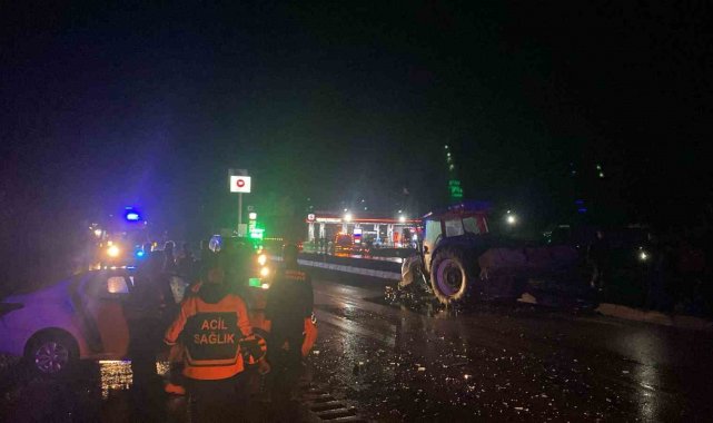 Ters yönde ilerleyen traktör ile otomobil çarpıştı: 2 yaralı