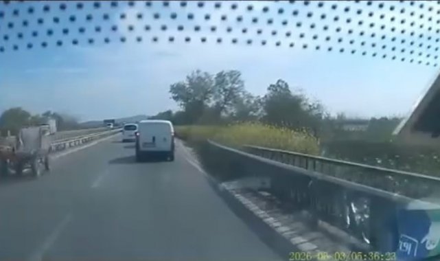 Bursa İzmir karayolu Karacabey ilçesi yakınlarında Bursa yönüne seyir halinde olan sürücüler tehlike dolu anlar yaşadı. Ters yönden, sol şeridi kullanarak ilerleyen bir at arabası kazaya davetiye çıkardı.