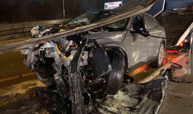 Kocaeli'de ters yönden yola giren otomobil refüjdeki bariyerleri biçti, kazada sürücü yaralanırken araç hurdaya döndü.