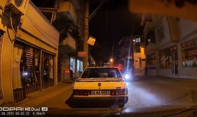 Olay, Osmangazi ilçesi Bağlarbaşı Mahallesi'nde meydana geldi. Edinilen bilgiye göre, ters yöne giren bir otomobil sokakta park halinde bulunan araçlara çarptı. Çarpmanın etkisiyle araçlarda maddi hasar oluşurken, sürücü büyük panik yaşadı. Bir anda aracını bırakıp koşarak uzaklaşan sürücünün o anları ise çevrede bulunan bir aracın kamerasına yansıdı.