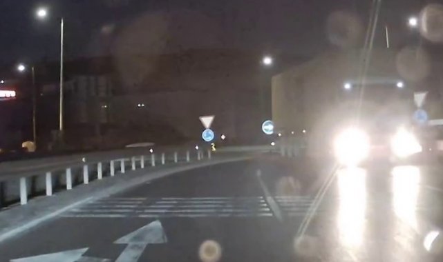Bursa'nın Gemlik ilçesinde ters şeride giren bir tır yürekleri ağza getirdi. Otomobil sürücüsü, tırı fark edince son anda frene basarak faciayı önledi.