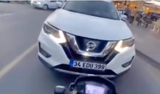 Yaşanan tartışma, otomobil sürücüsünün aracını geri çevirerek uzaklaşmasıyla son buldu. O anlar motosikletlinin kask kamerasına saniye saniye yansıdı.