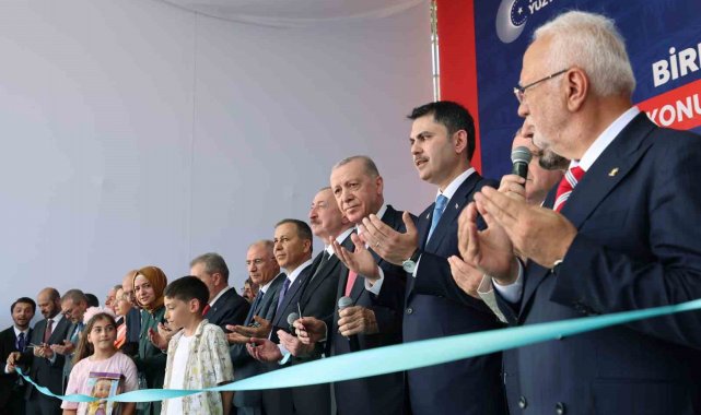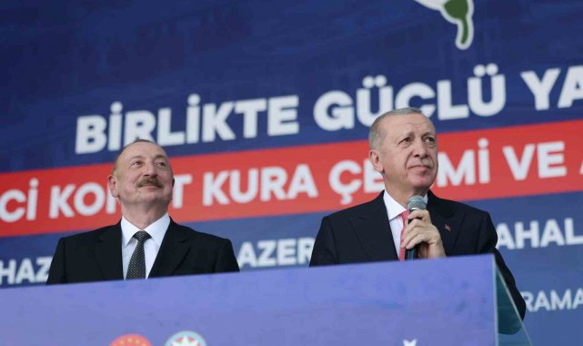 Burada konuşan Cumhurbaşkanı Recep Tayyip Erdoğan, 6 Şubat depremlerinde 53 bin 735 canın toprağa verildiğini hatırlatarak, "Türkiye ile Azerbaycan arasındaki gelecek birliğinin en somut örneklerinden biri, açılışını yaptığımız konutlardır. Biliyorsunuz, 6 Şubat 2023'te tarihimizin en büyük doğal afetlerinden birini yaşadık. Geçmişten bugüne pek çok acı hatıralarımız oldu. Ama o sabah 11 ilimizde gördüğümüz yıkım ve elem hepsinden ayrıydı. 12.796'sı Maraş'ta olmak üzere 53.735 canımızı toprağa verdik. Rabbim bizlere böyle bir acıyı tekrar yaşatmasın diyorum. Bu vesileyle depremde hayatını kaybeden kardeşlerimize bir kez daha Allah'tan rahmet, gelecek kalan kardeşlerime sabırlar diliyorum. Hamdolsun depremin ilk anından beri inancımızı hiç yitirmedik. Yaşadığımız imtihan karşısında bir gün bile ümitsizliğe kapılmadık. Milletimizle gönül gönüle verdik ve süratle kendimizi toparladık. Şimdi sevgili edeler, bu zorlu süreçte ülkemizin imdadına ilk koşanlardan biri canlı Azerbaycan'dır. Felaketin haberini alır almaz, seninleyim Türkiye'm diyerek, Kardeşlik örneği başlatan, arabasının tavanına varını yoğunu sararak milletimize yardım etmeye çalışan, duaları, destekleri, samimi gözyaşlarıyla acımızı paylaşan Azerbaycan halkının dayanışmasını hiçbir zaman unutamayız ve unutmayacağız. Özellikle İlham kardeşimiz ve saygıdeğer refikası Mehriban Hanım'ın yardım seferberliğimize verdiği güçlü katkının gönlümüzde hep ayrı bir yeri var "dedi.