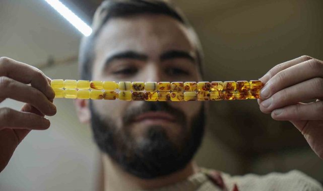 4 kuşaktır tespih üretimi yapan Murat Cengiz, "Damla kehribar, çam reçinesinin özüdür. Soba yakarken tutuşturduğumuz çıraların içerisindeki özdür. İsmi çam sakızı diye de geçer. Ağaçtan toprak altına akması ve milyonlarca yıl orada fosilleşip aynı kömür gibi kaya haline gelmesi ile oluşur. Kaya haline geldikten sonra topraktan çıkarılıp kolye, tespih ve diğer takılar yapılıyor. Doğal olması, çıkarılması ve temin edilmesi zorlu bir süreç olduğundan dolayı pahalı. Şu an Türkiye'de olmadığı için yurt dışından geliyor. Yurt dışından gelmesi de fiyatını yükseltiyor. Damla kehribar kolyelerinin kullanılması guatr ve tiroit bezi üzerindeki etkisinden dolayı sağlık açısından çok faydalı" diye konuştu