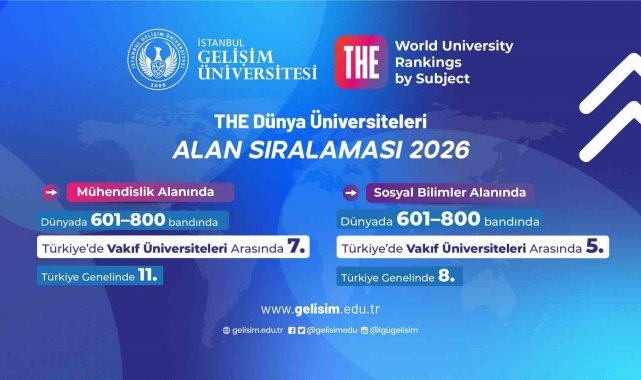 İstanbul gelişim üniversitesi, yükseköğretim derecelendirme kuruluşu Times Higher Education (THE) tarafından açıklanan 2026 dünya üniversiteleri alan sıralamasında önemli bir başarıya daha imza attı. 98 ülkeden 1555 üniversitenin, toplam 18 performans göstergesi doğrultusunda değerlendirildiği sıralamada gelişim üniversitesi, sosyal bilimler alanındaki güçlü konumunu sürdürürken, mühendislik alanında da listeye girerek akademik yetkinliğini farklı