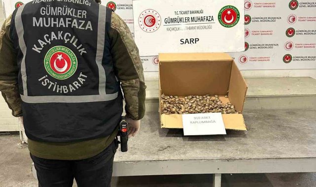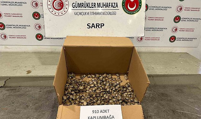 Ticaret Bakanlığı Gümrükler Muhafaza ekiplerince, ilginç bir kaçakçılık girişimi önlendi. Sarp Gümrük Kapısı'nda 910 adet su kaplumbağası ele geçirildi.