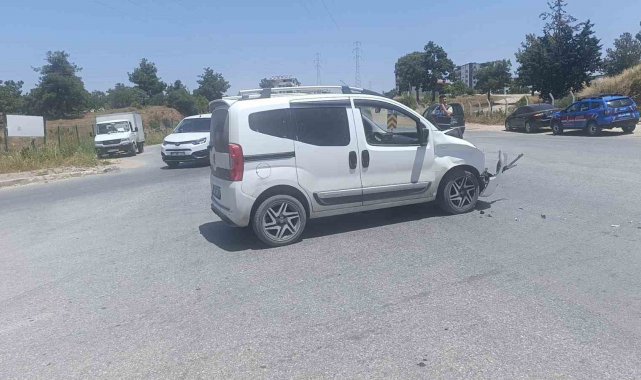 Ticari araç yandan çarptığı kamyoneti devirdi