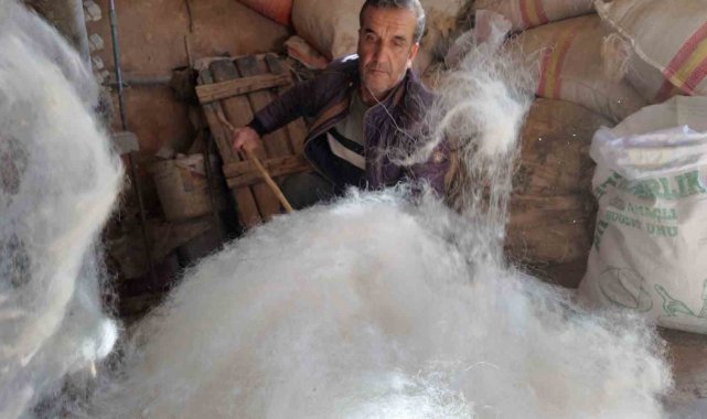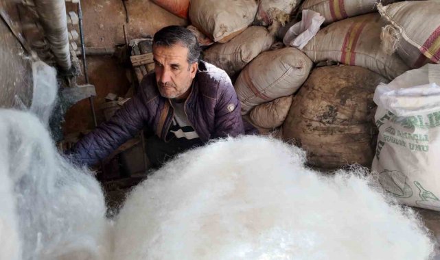 Siirt'te tiftik atölyesini yün atölyesine çeviren 52 yaşındaki Abdullah Aydın, 30 yıldır kentte vatandaşlara yastık, minder ve yorgan yünü çekiyor.