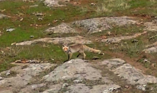 Bitlis'in Ahlat ilçesinde doğa çekimleri yapan video içerik üreticisi Ercan Baş, dron ile bir tilkiyi görüntüledi.