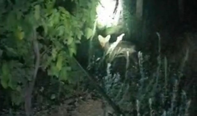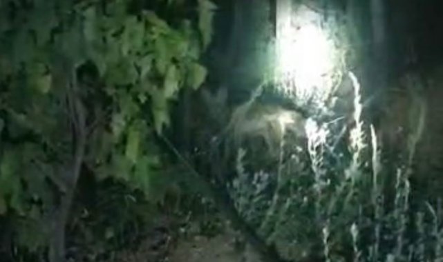 Görüntülerde, üretici gece el feneri ile gezerken tilkileri gördüğü ardından ise tilkilerin ışıktan korkarak kaçtığı anlar yer aldı.