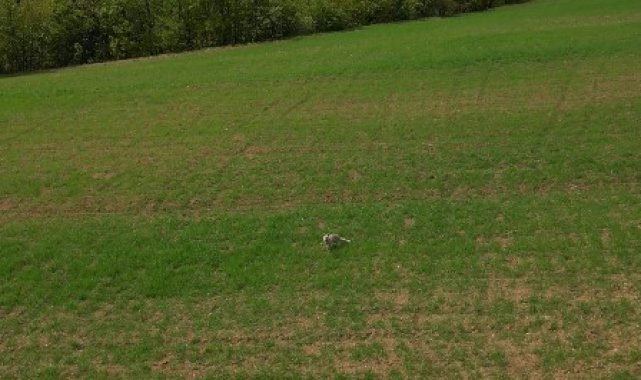Kastamonu'da arazide dolaşan tilki, dronu görünce meraklı bakışlar arasında önce inceledi, üzerine gelince de ürküp ormanlık alana kaçtı. O anlar saniye saniye görüntülendi.